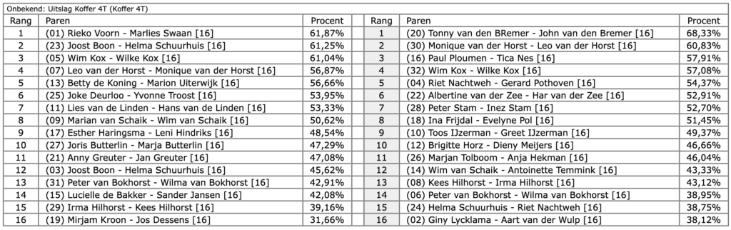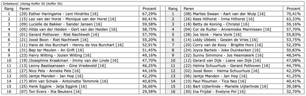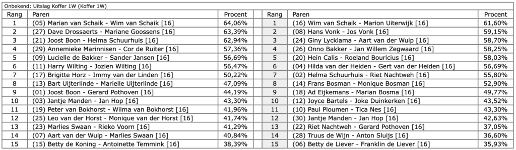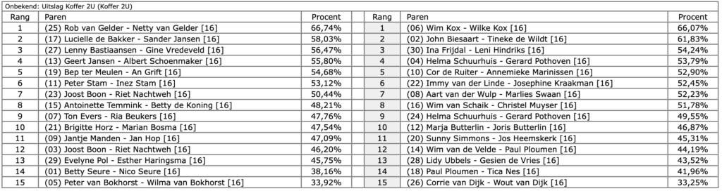 De uitslag van koffer 1U is helaas komen te vervallen.